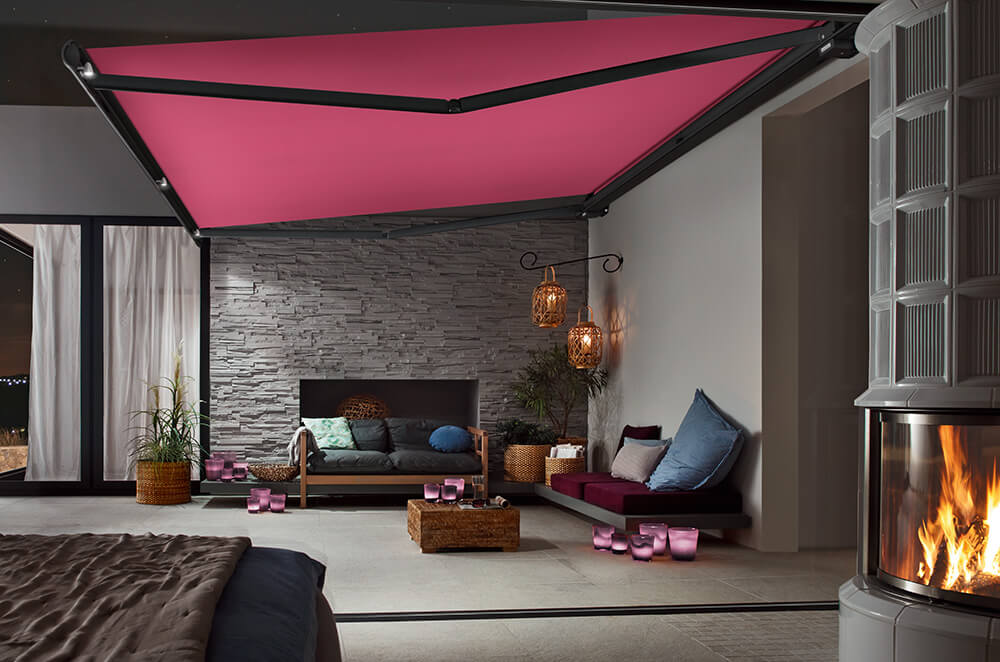 Kreieren Sie Ihre persönliche Terrassenatmosphäre mit Lichtstimmung, Musik und geöffneter Markise.