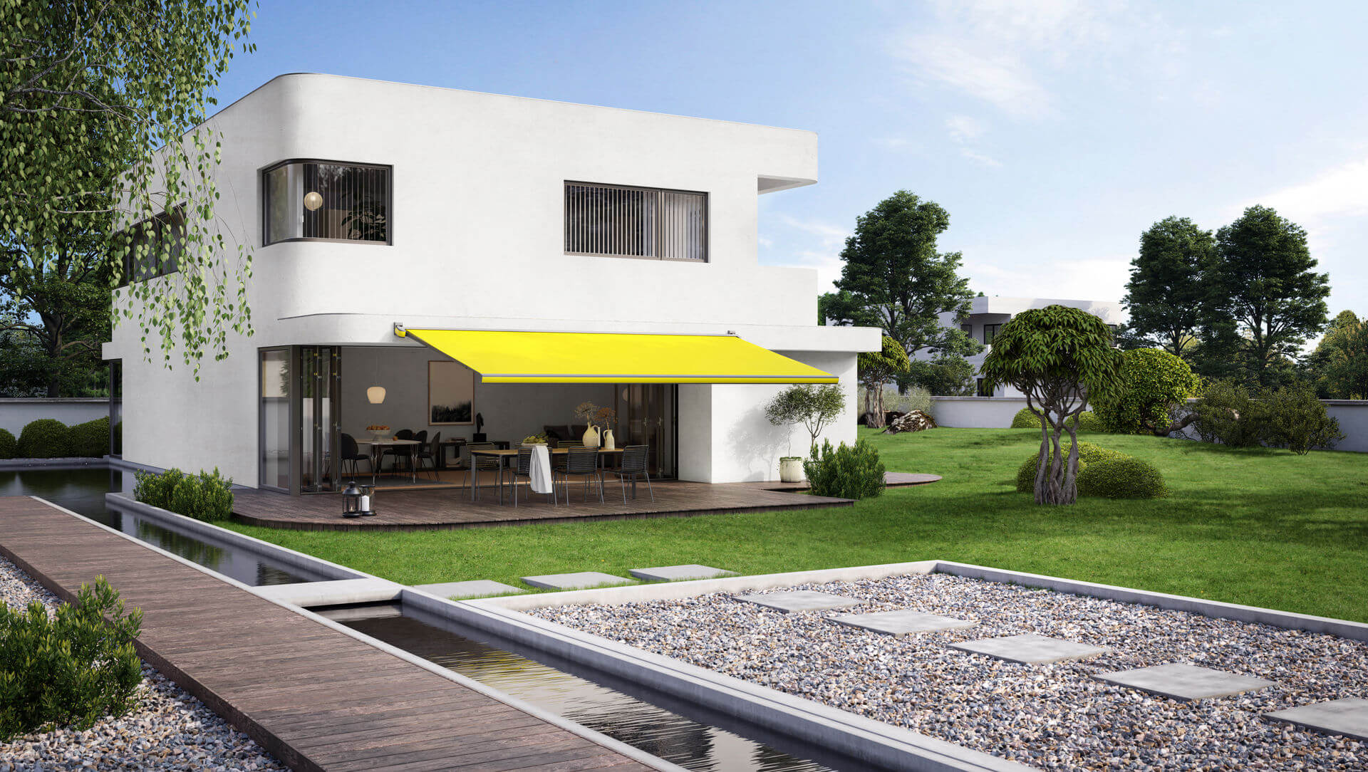 Entsprechend der aktuellen Wetterlage sorgt die intelligente Steuerung für automatisches Ein- und Ausfahren der Markise.