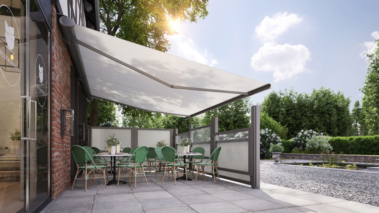 Sichtschutz für die Terrasse kann gleichzeitig modern, gemütlich und elegant sein. Das beweisen die Seitenmarkisen markilux format, markilux format slide und markilux format lift mit langlebigen und schönen Stoffen.