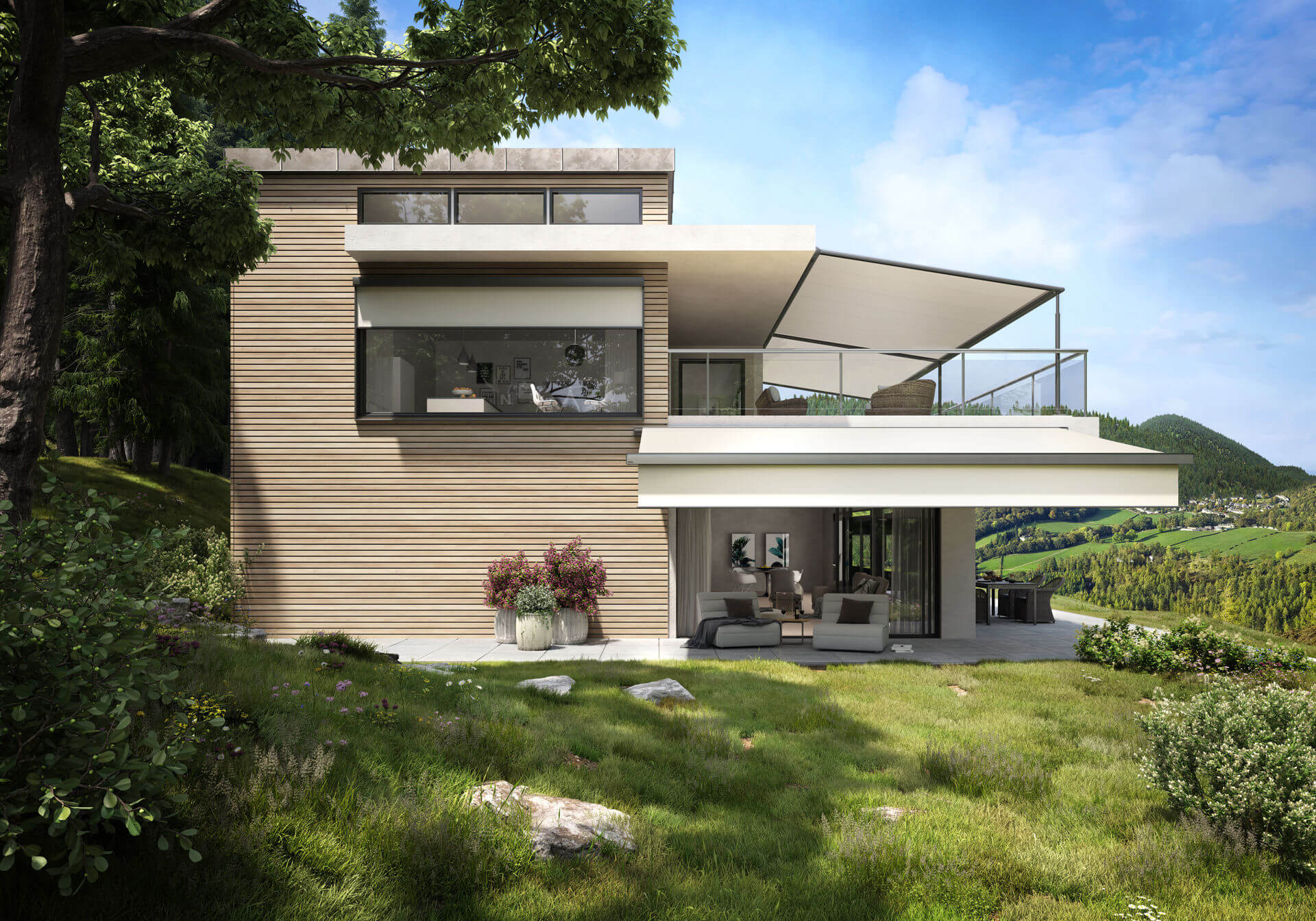 Entsprechend der aktuellen Wetterlage sorgt die intelligente Steuerung für automatisches Ein- und Ausfahren der Markise.