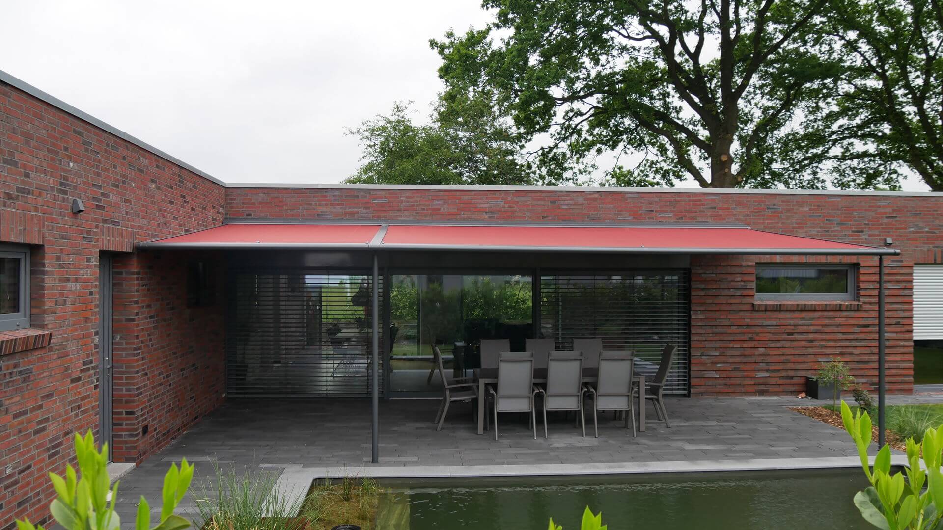 Auf Wunsch können hier mehrere Markisen miteinander gekoppelt werden. Entweder mit einem zusätzlichen Schlitzrollo, oder sogar mit einem durchgehenden Tuch!